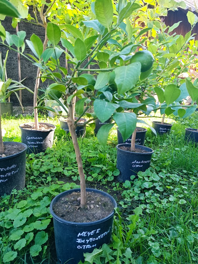 Alacsony törzsre oltott, termőkorú citromfa, egész évben képes gyümölcsöt nevelni, gyümölcse sárga-narancssárga.